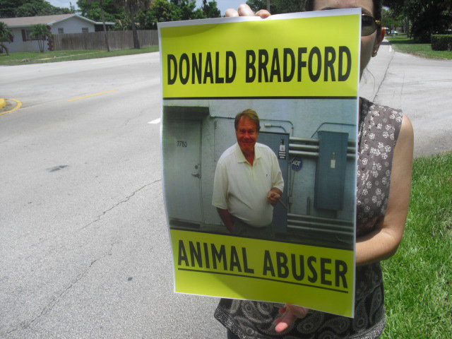 Maintaining our pressure on Donald Bradford, a vivisection supplier & president of Primate Products, more than a dozen activists demonstrated at Pembroke Lakes Golf & Country Club, a golf club he is a member of.