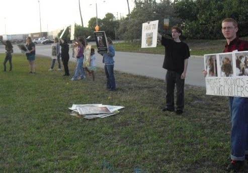 At the end of the day, many leaflets were passed out to concerned people and much pressure was applied to those who attempt to profit from the torture and mutilation of innocent animals. Protests will continue until Amerijet stops the transport of primates for vivisection.