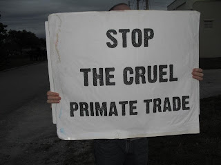 On December 1st, nearly two dozen activists gathered at the Fort Lauderdale headquarters of Amerijet International to once again condemn their involvement in the unethical transport of primates. Amerijet is one of the few remaining airlines that still transports primates for the vivisection industry. These unfortunate animals are destined to be used in painful experiments during which most will die. Amerijet has worked with the recently exposed company, Primate Products, whose gruesome photographs turn the stomach of every animal lover. A number of police were in attendance. We promise to continue protesting Amerijet until they stop the monkey flights.