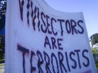 On December 2nd, a number of passionate activists paid an unexpected visit to the awful monkey killers at Primate Products. These animal abusers were recently exposed when horrible photographs were leaked to the public by the Animal Liberation Investigation Unit. Dedicated and caring individuals pledge to continue to protest the barbarity of this company. Donald Bradford and all the other degenerate employees are responsible for the horrific torture and murder of defenseless primates. We will forever remind them of their shame. Our protests will be when they least expect them.